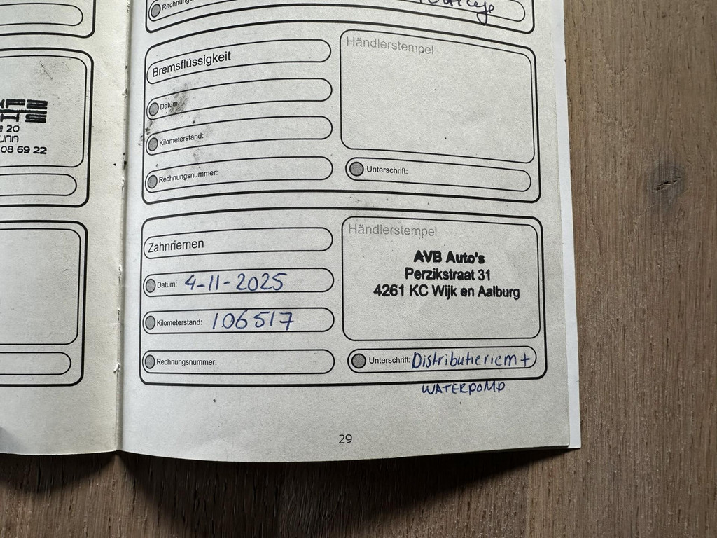De auto is door ons voorzien van een nieuwe distributieriem met waterpomp en een kleine onderhoudsbeurt.